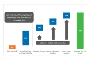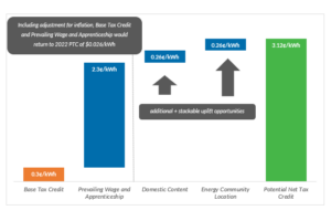 Regarding the Production Tax Credit, specifically, the IRA decreased the PTC to $0.003/kWh with a path to return the PTC to the full $0.015/kWh. Which with the current inflation adjustment brings the PTC to the current rate of $0.026/kWh for 2022. Projects meeting prevailing wage and apprenticeship requirements would achieve a 5X multiplier, returning the PTC to the full $0.015/kWh. Additionally, there is a potential for significant gain for wind projects given the removal of the phaseout reduction and the available additional uplifts (10% each if they meet the domestic content and energy community location requirements). Also Prior to the IRA, only wind projects post-2007 were eligible for the PTC, but now it’s available for solar projects as well.