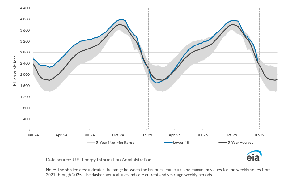 EIA Natural Gas Storage as of 1/30/26, as reported 2/5/26