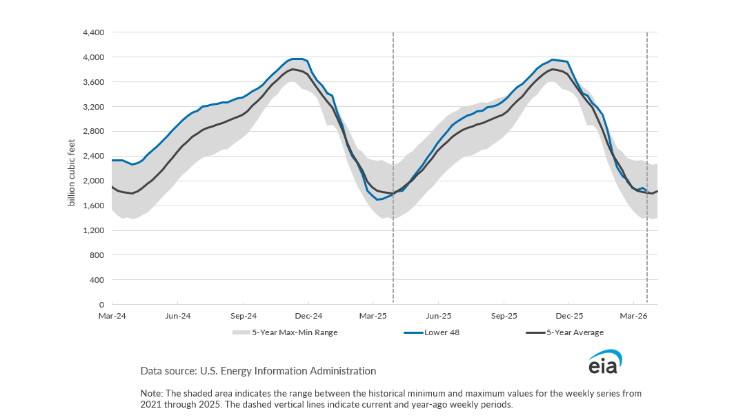 EIA Natural Gas Storage as of 3/20/26, as reported 3/26/26